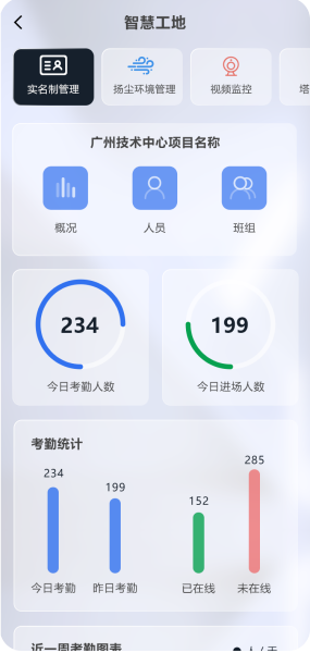 4.0中的“智慧工地管理系统”,全面优化了交互界面,针对管理环节强化了多项:实时查看、预警提醒、记录溯源等功能,让企业可以更简单便捷地管理旗下所有建筑工程项目,运筹帷幄。